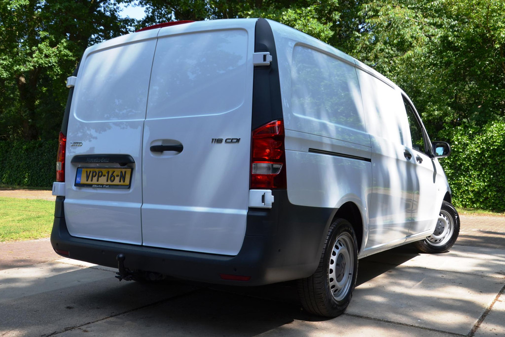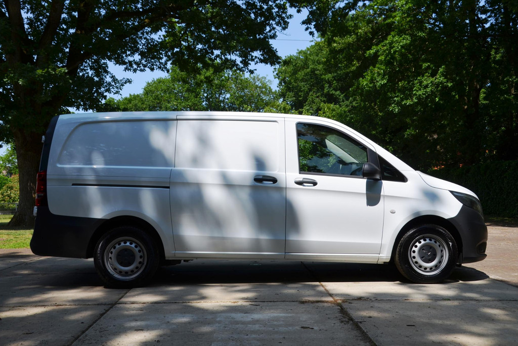 Goede prestaties, aantrekkelijke extra's en perfect onderhouden: deze Mercedes-Benz Vito stelt zich graag aan u voor! Met zijn dieselmotor en handgeschakelde zesversnellingsbak is dit een prima auto voor nog vele kilometers. De schuifdeur voor de passagiers neemt veel minder ruimte in bij het opengaan; prettig als u wat krapper moet parkeren. Tot de uitrusting van deze Mercedes-Benz behoren ook warmtewerend glas, trailer assistent, elektrisch verstelde en verwarmde buitenspiegels, elektrisch bedienbare ramen voor en start-stopsysteem.