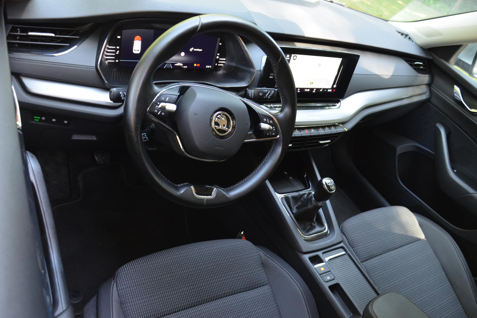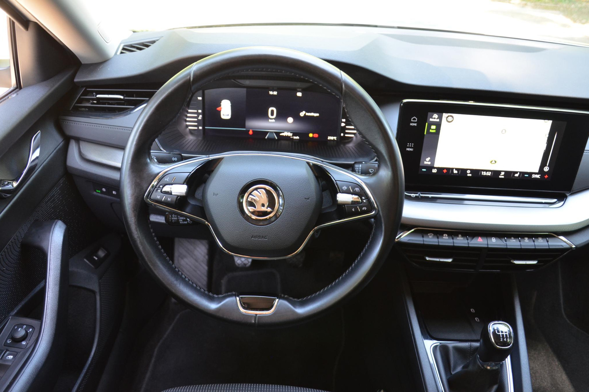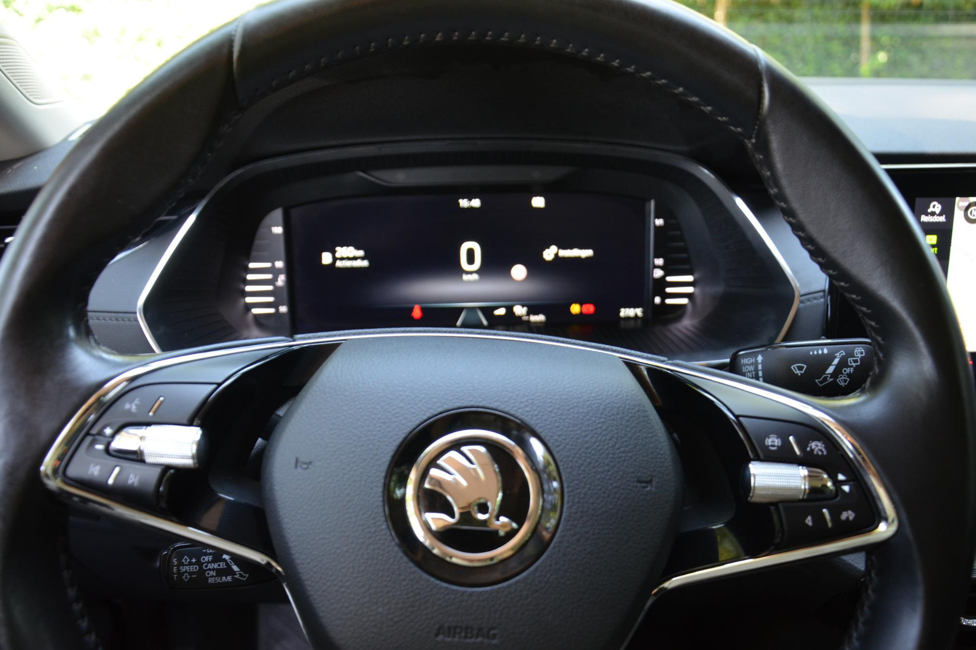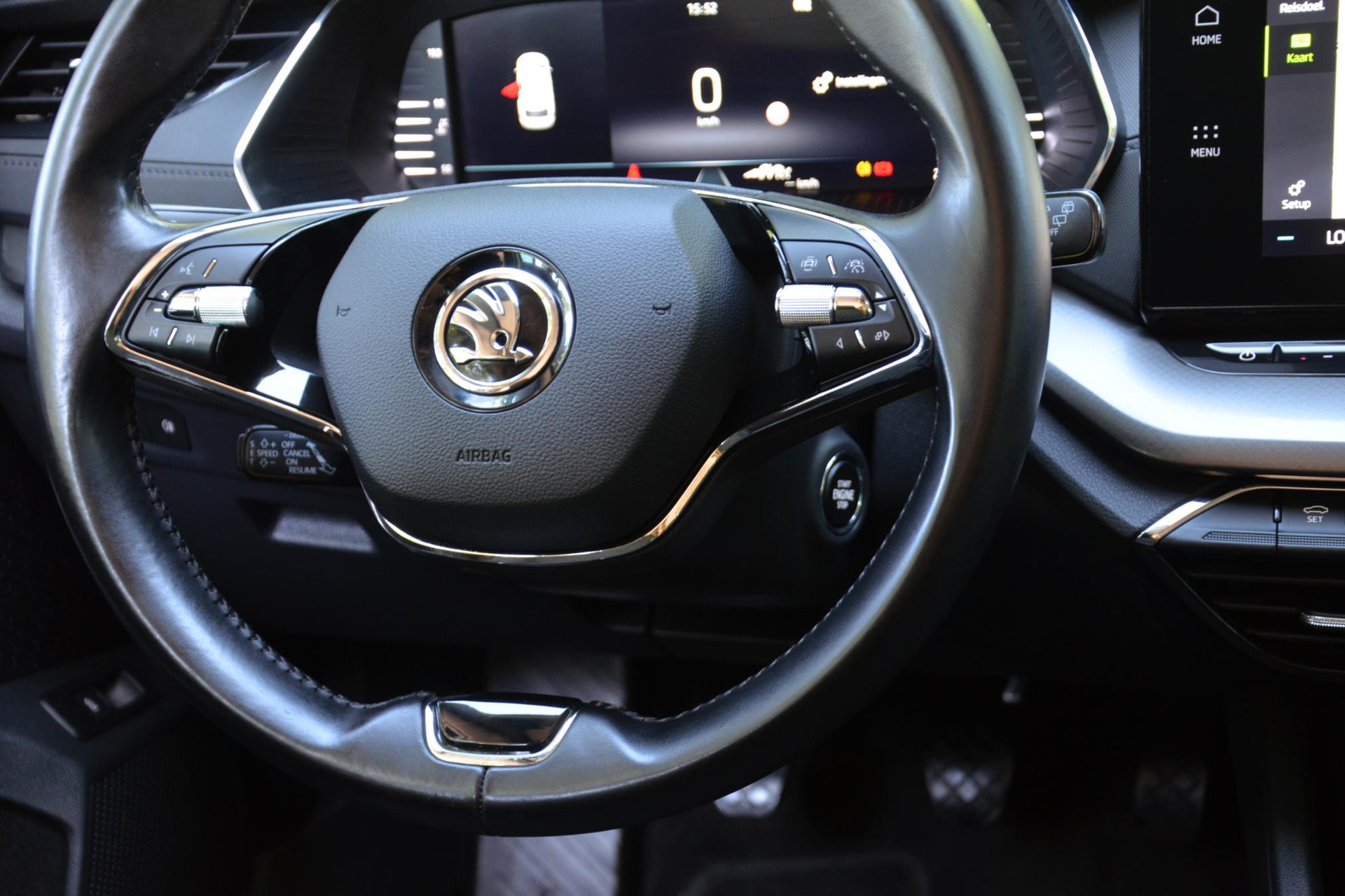 Een gevisualiseerd overzicht van alle belangrijke functies wordt geleverd door het digitale dashboard. Met adaptive cruise control houdt deze auto automatisch afstand tot uw voorligger. Spraaksturing maakt het eenvoudiger en veiliger om deze auto onderweg te bedienen. Je ziet hem niet, maar hij is er wel: de elektrisch inklapbare trekhaak. Handig en veilig: Connected Services. Alle vitale functies en data van de auto checkt u via de app op uw smartphone. De Skoda is standaard voorzien van: full map navigatiesysteem, automatische airconditioning, draadloos opladen, DAB ontvangst, parkeersensoren achter en regensensor.