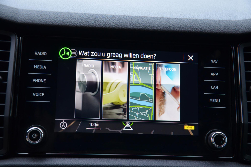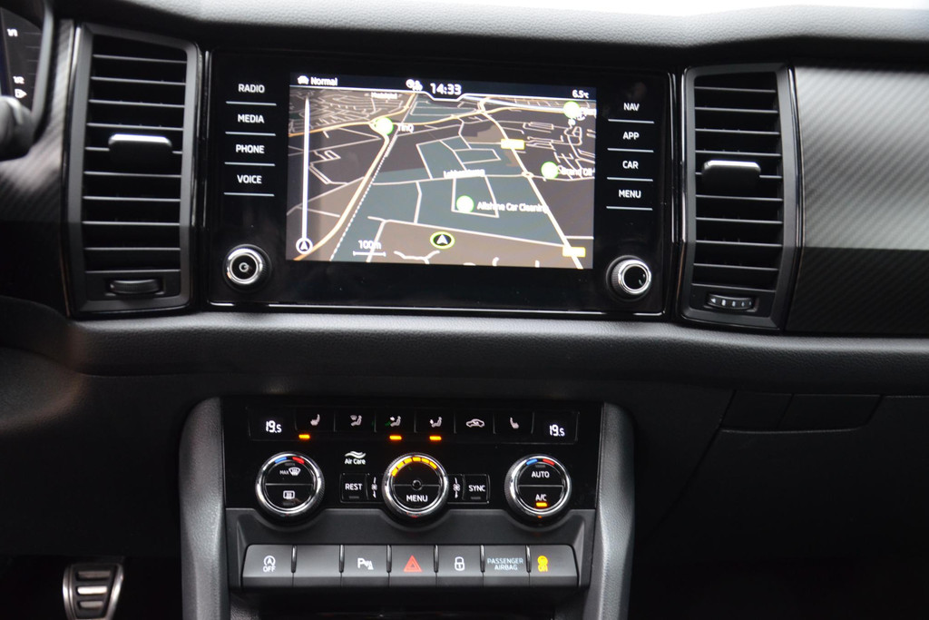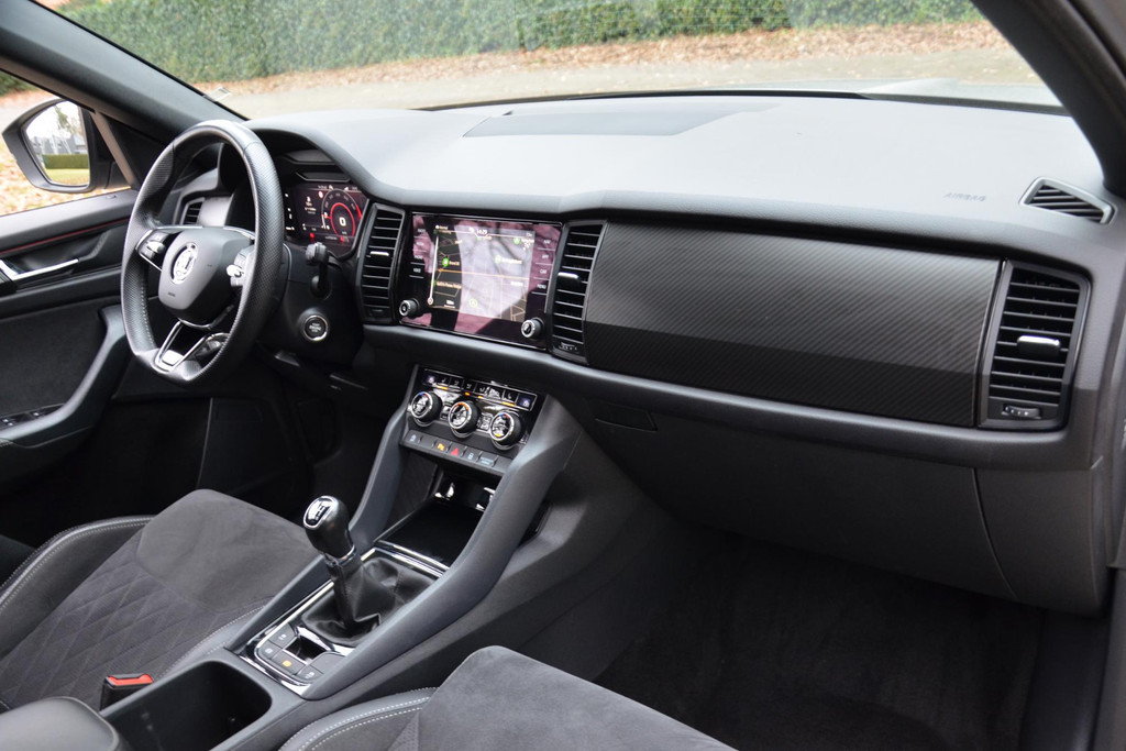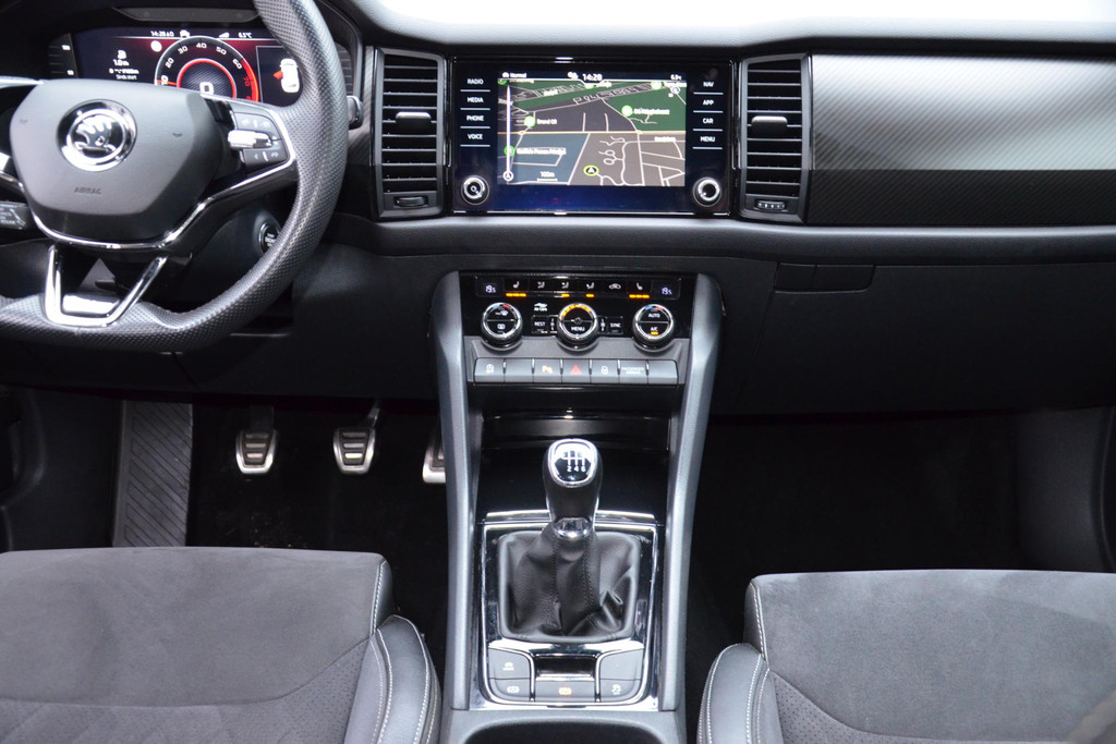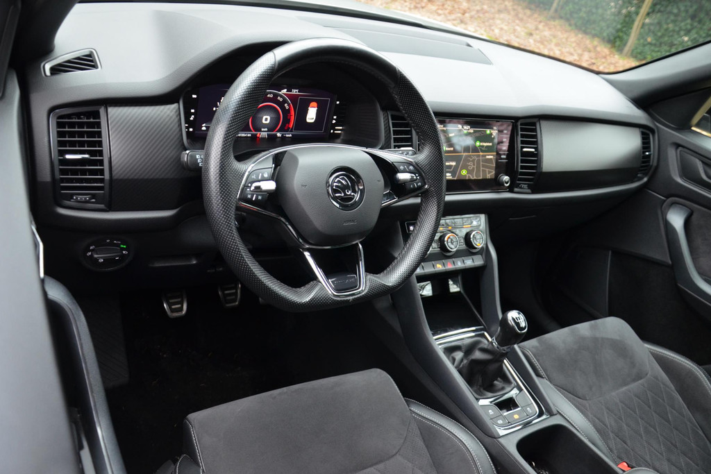 Natuurlijk brengt het digitale dashboard alle ritinformatie perfect in beeld. Maar ook communicatie, navigatie en tal van andere functies zijn permanent te volgen. De achteruitrijcamera maakt inparkeren gemakkelijker dan ooit. Met adaptive cruise control houdt de auto zelfstandig afstand tot uw voorligger. Een veiligheidsverhogende optie waarmee u comfortabel onderweg bent. Rijden-stilstaan, rijden-stilstaan. Niks is irritanter en vermoeiender dan filerijden. Daar heeft deze Skoda Kodiaq een oplossing voor: de file assistent, die met radarmeting permanent het tempo aanpast op de voorligger. Zelfs als die stopt. De inklapbare trekhaak zit niet in de weg als u hem niet gebruikt. Heeft u de trekhaak nodig, dan klapt hij met een druk op de knop uit. Deze Skoda is voorzien van dashboard met spraakbediening, connected drive services, full map navigatiesysteem, achteropkomend verkeer waarschuwing, electronic climate control en draadloos opladen.