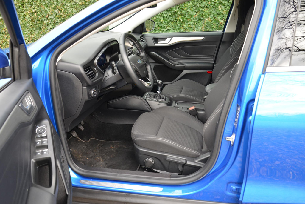 Pragmatisch en veilig als deze auto is, beschikt hij over diverse veiligheidssystemen. Deze Ford Focus Wagon is ook behulpzaam als het gaat om een rechte koers. Het Lane-keeping systeem signaleert en corrigeert als u onbedoeld de rijstrooklijnen dreigt te overschrijden. Het forward collision warning-systeem is constant alert en detecteert via sensor de afstand tot voorliggers. Wordt die te klein, dan volgt een automatische waarschuwing. Verder is deze auto uitgerust met hill hold functie, brake assist en bandenspanningcontrolesysteem.