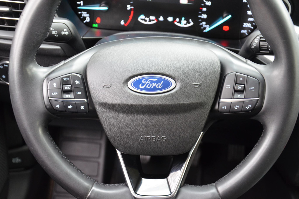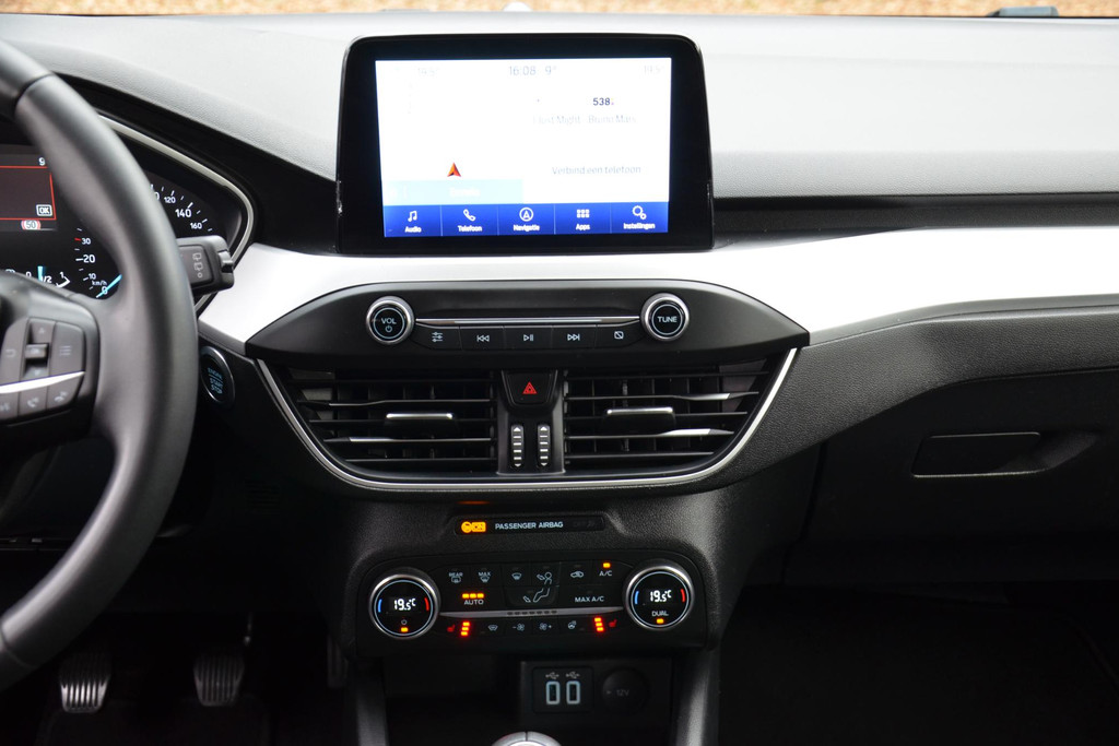 Zoals u mag verwachten van deze Ford Focus Wagon is hij uitgerust met een reeks aan actieve veiligheidssystemen. Keep your lane? Het Lane-keeping systeem zorgt er automatisch voor. Het forward collision warning-systeem waarschuwt indien een botsing dreigt met een voorliggend of tegemoetkomend voertuig. Met voorzieningen als hill hold functie, brake assist en bandenspanningcontrolesysteem, bent u altijd veilig onderweg.