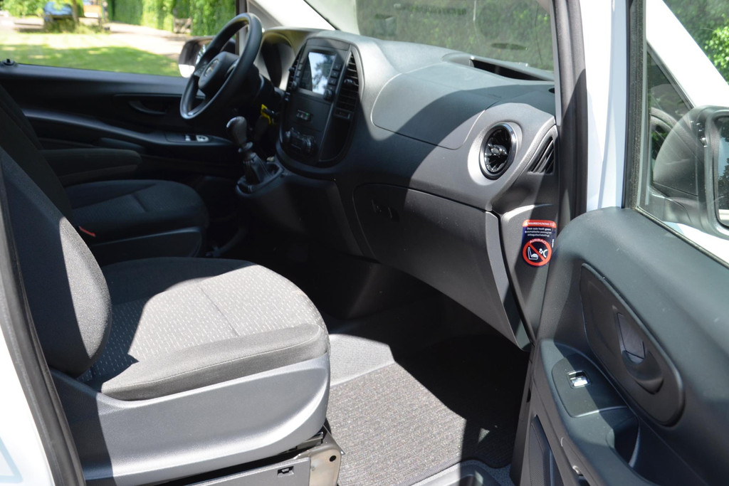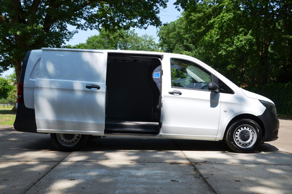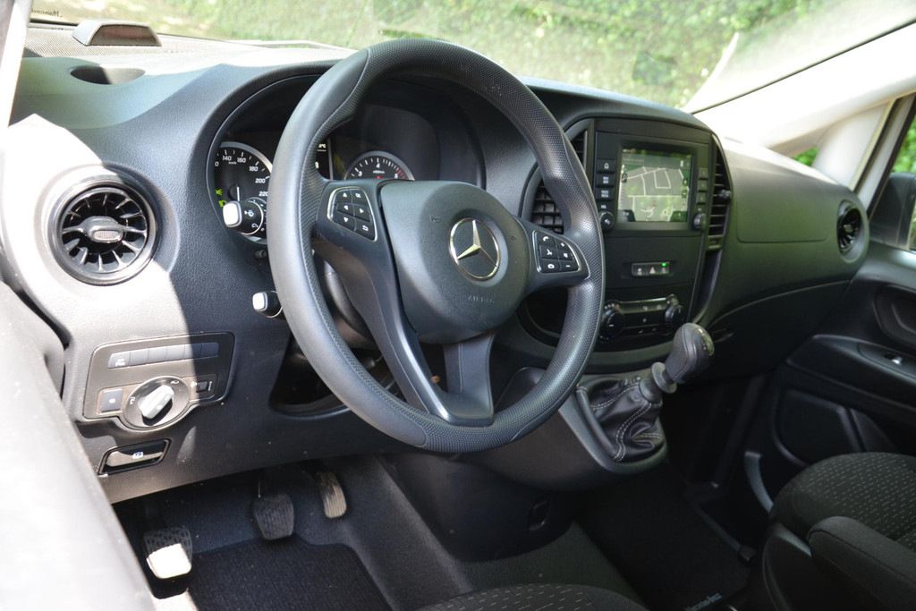 Goede prestaties, aantrekkelijke extra's en perfect onderhouden: deze Mercedes-Benz Vito stelt zich graag aan u voor! Met zijn dieselmotor en handgeschakelde zesversnellingsbak is dit een prima auto voor nog vele kilometers. De schuifdeur voor de passagiers neemt veel minder ruimte in bij het opengaan; prettig als u wat krapper moet parkeren. Tot de uitrusting van deze Mercedes-Benz behoren ook warmtewerend glas, trailer assistent, elektrisch verstelde en verwarmde buitenspiegels, elektrisch bedienbare ramen voor en start-stopsysteem.