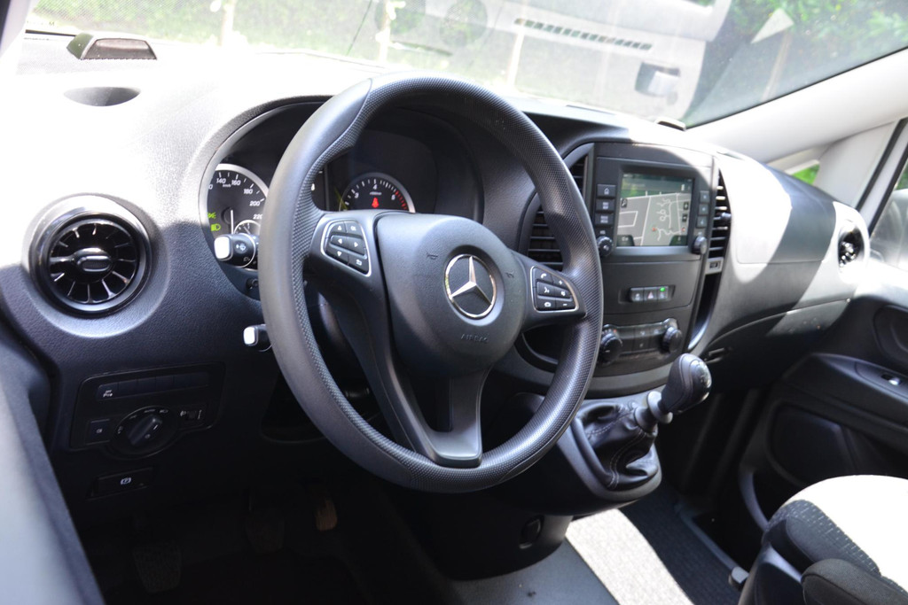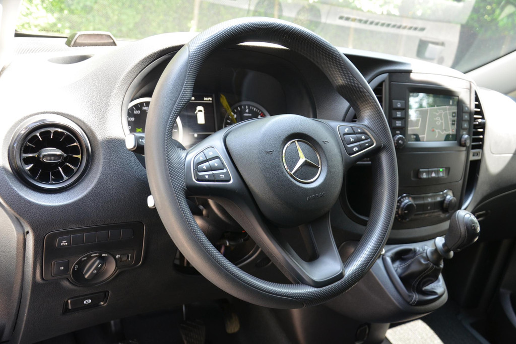 Goede prestaties, aantrekkelijke extra's en perfect onderhouden: deze Mercedes-Benz Vito stelt zich graag aan u voor! Met zijn dieselmotor en handgeschakelde zesversnellingsbak is dit een prima auto voor nog vele kilometers. De schuifdeur voor de passagiers neemt veel minder ruimte in bij het opengaan; prettig als u wat krapper moet parkeren. Tot de uitrusting van deze Mercedes-Benz behoren ook warmtewerend glas, trailer assistent, elektrisch verstelde en verwarmde buitenspiegels, elektrisch bedienbare ramen voor en start-stopsysteem.