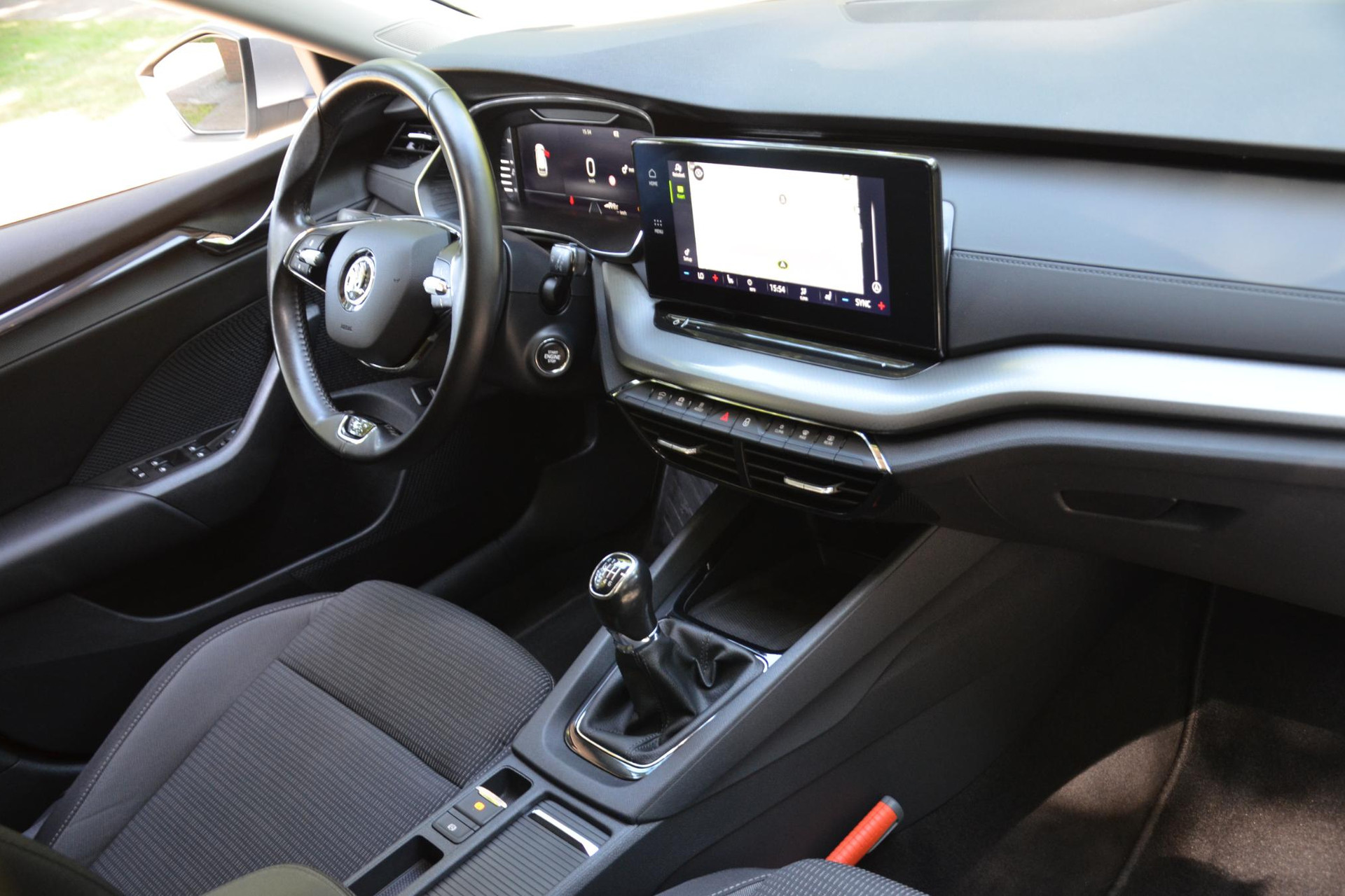 Een gevisualiseerd overzicht van alle belangrijke functies wordt geleverd door het digitale dashboard. Met adaptive cruise control houdt deze auto automatisch afstand tot uw voorligger. Spraaksturing maakt het eenvoudiger en veiliger om deze auto onderweg te bedienen. Je ziet hem niet, maar hij is er wel: de elektrisch inklapbare trekhaak. Handig en veilig: Connected Services. Alle vitale functies en data van de auto checkt u via de app op uw smartphone. De Skoda is standaard voorzien van: full map navigatiesysteem, automatische airconditioning, draadloos opladen, DAB ontvangst, parkeersensoren achter en regensensor.