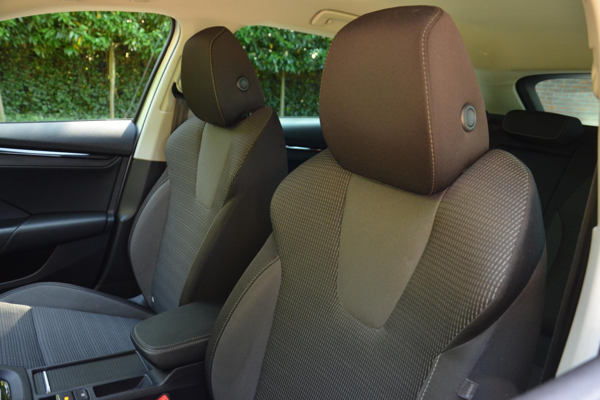 Elektronische veiligheidsvoorzieningen helpen u onderweg om de situatie op de weg te beoordelen. Deze systemen waarschuwen u als er een riskante situatie ontstaat, en kunnen in bepaalde gevallen ook zelf ingrijpen. Dat de auto steeds meer taken van de bestuurder overneemt, merkt u bijvoorbeeld aan het systeem voor verkeersbord-detectie in deze Skoda. Voorzien van het Lane-keeping systeem. Ofwel: blijf automatisch in je baan. Onbedoeld bumperkleven is er niet bij, dankzij de forward collision warning. Die waarschuwt direct als een botsrisico met uw voorligger dreigt. In deze Skoda vinden we verder een vermoeidheidsherkenning, autonoom remsysteem en bandenspanningcontrolesysteem.