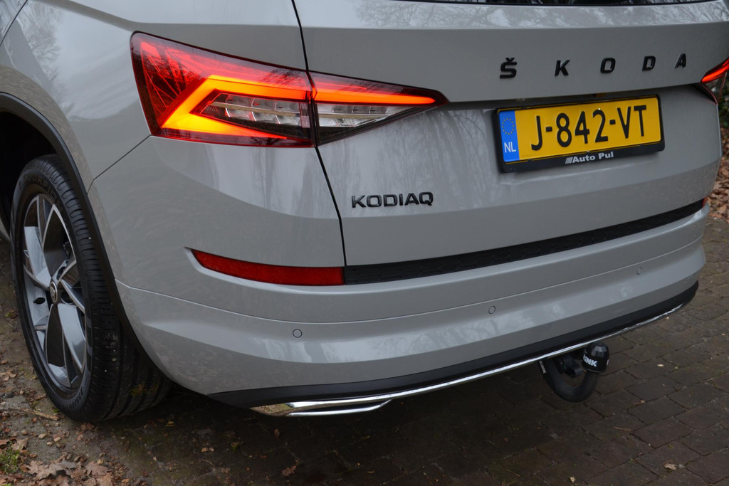 Natuurlijk brengt het digitale dashboard alle ritinformatie perfect in beeld. Maar ook communicatie, navigatie en tal van andere functies zijn permanent te volgen. De achteruitrijcamera maakt inparkeren gemakkelijker dan ooit. Met adaptive cruise control houdt de auto zelfstandig afstand tot uw voorligger. Een veiligheidsverhogende optie waarmee u comfortabel onderweg bent. Rijden-stilstaan, rijden-stilstaan. Niks is irritanter en vermoeiender dan filerijden. Daar heeft deze Skoda Kodiaq een oplossing voor: de file assistent, die met radarmeting permanent het tempo aanpast op de voorligger. Zelfs als die stopt. De inklapbare trekhaak zit niet in de weg als u hem niet gebruikt. Heeft u de trekhaak nodig, dan klapt hij met een druk op de knop uit. Deze Skoda is voorzien van dashboard met spraakbediening, connected drive services, full map navigatiesysteem, achteropkomend verkeer waarschuwing, electronic climate control en draadloos opladen.