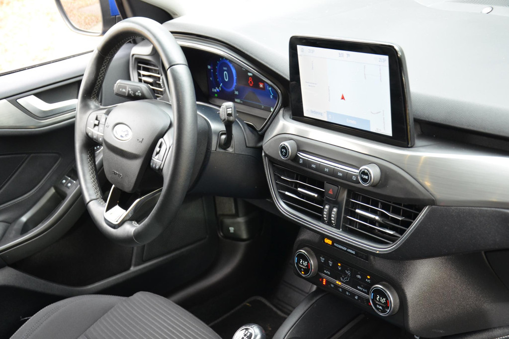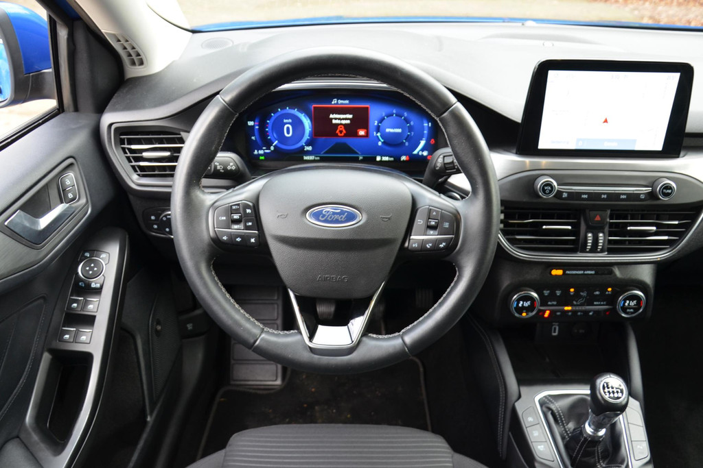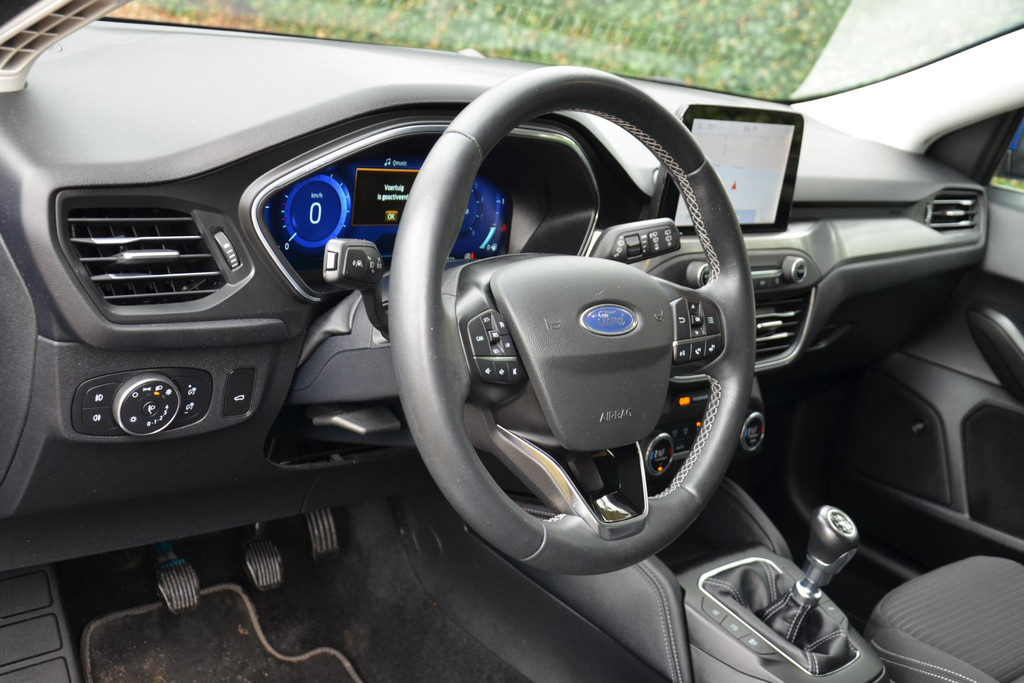 Pragmatisch en veilig als deze auto is, beschikt hij over diverse veiligheidssystemen. Deze Ford Focus Wagon is ook behulpzaam als het gaat om een rechte koers. Het Lane-keeping systeem signaleert en corrigeert als u onbedoeld de rijstrooklijnen dreigt te overschrijden. Het forward collision warning-systeem is constant alert en detecteert via sensor de afstand tot voorliggers. Wordt die te klein, dan volgt een automatische waarschuwing. Verder is deze auto uitgerust met hill hold functie, brake assist en bandenspanningcontrolesysteem.