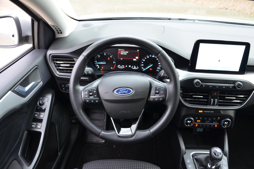 Zoals u mag verwachten van deze Ford Focus Wagon is hij uitgerust met een reeks aan actieve veiligheidssystemen. Keep your lane? Het Lane-keeping systeem zorgt er automatisch voor. Het forward collision warning-systeem waarschuwt indien een botsing dreigt met een voorliggend of tegemoetkomend voertuig. Met voorzieningen als hill hold functie, brake assist en bandenspanningcontrolesysteem, bent u altijd veilig onderweg.